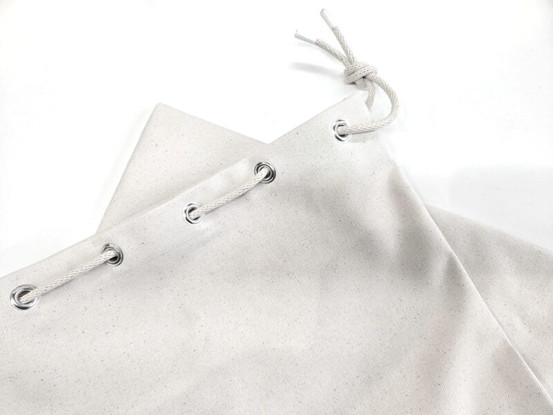 関東地方の教育機関でご使用になる大型の巾着の縫製を行っています。 生地は丈夫な8号帆布で、口紐は…