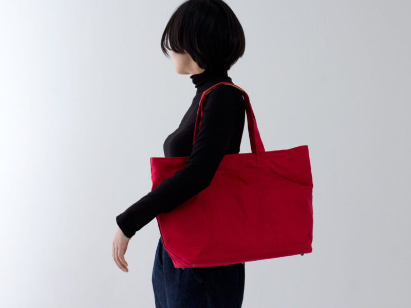 パラフィン加工を施した10号帆布を表地に、11号帆布を裏地に用いた比較的大型のトートバッグの試作を…
